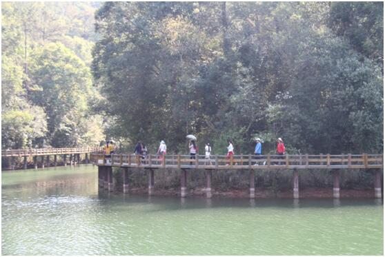 活動中,大家一邊漫步在梅子湖公園的棧道上,一邊呼吸著清新的空氣;和煦的陽光還有林間已經(jīng)盡相盛開的花朵,吸引住了女同胞的眼球,她們紛紛三五成群、四五結(jié)對的開始拍照,棧道上頓時充滿了嬉笑聲、打鬧聲。